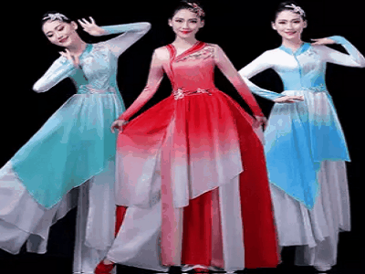 古典舞演出服女飘逸中国风古风现代扇子舞蹈渐变色套装书简舞服装
